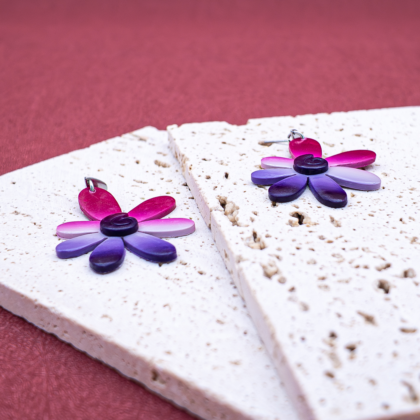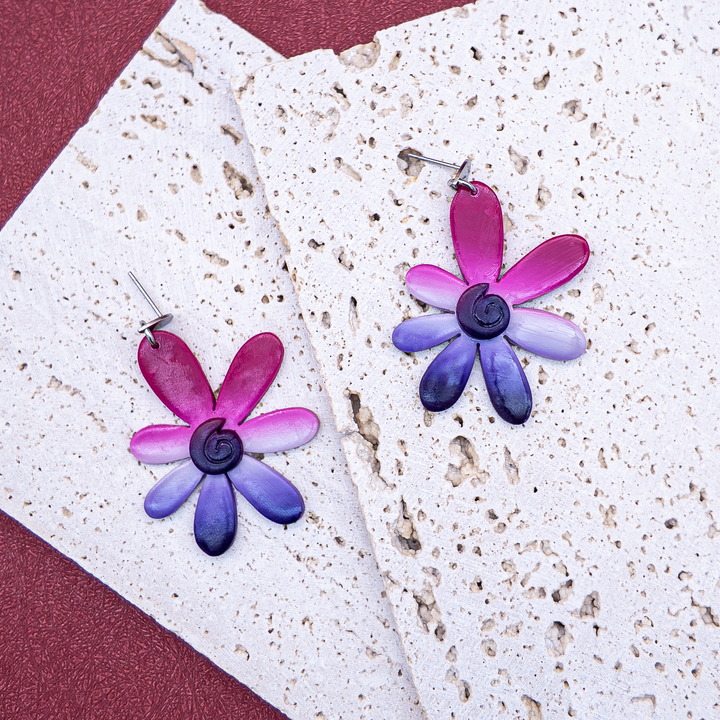 “Bloom Out Loud” captures the energy of spontaneous joy — a sculpted daisy form reimagined in vibrant fuchsia, lilac, and deep violet. Each petal radiates from a midnight-purple spiral center, giving the piece a sense of rhythm and growth.