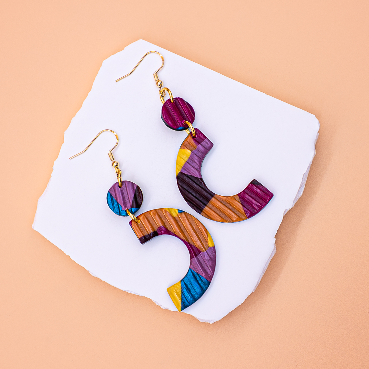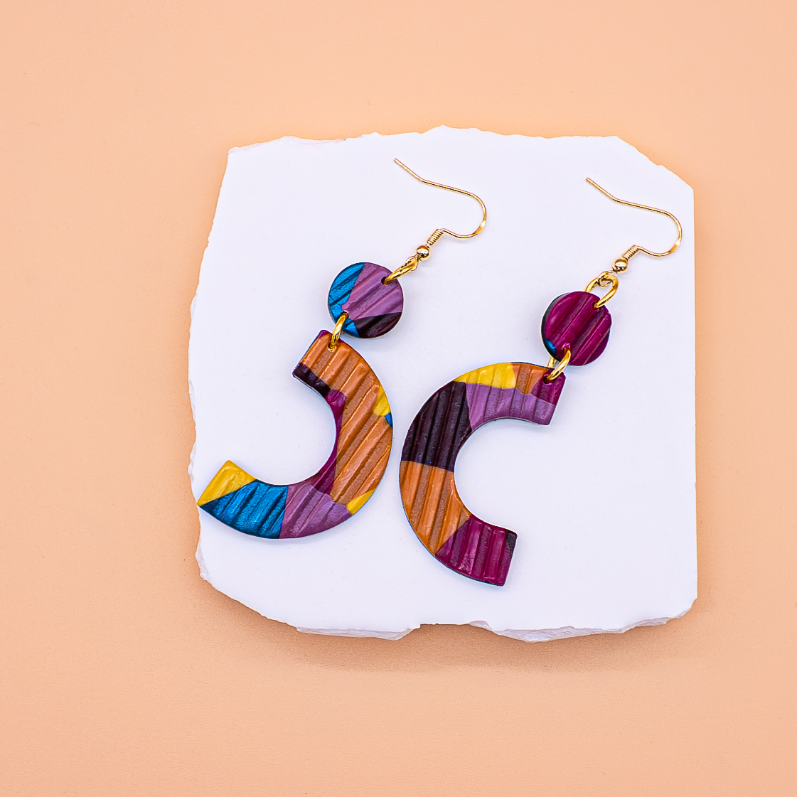 “Chroma Arc” earrings celebrate the power of bold shapes and radiant color. Inspired by abstract forms and the rhythm of modern art, they blend arcs and circles into a playful geometry that feels both contemporary and timeless.