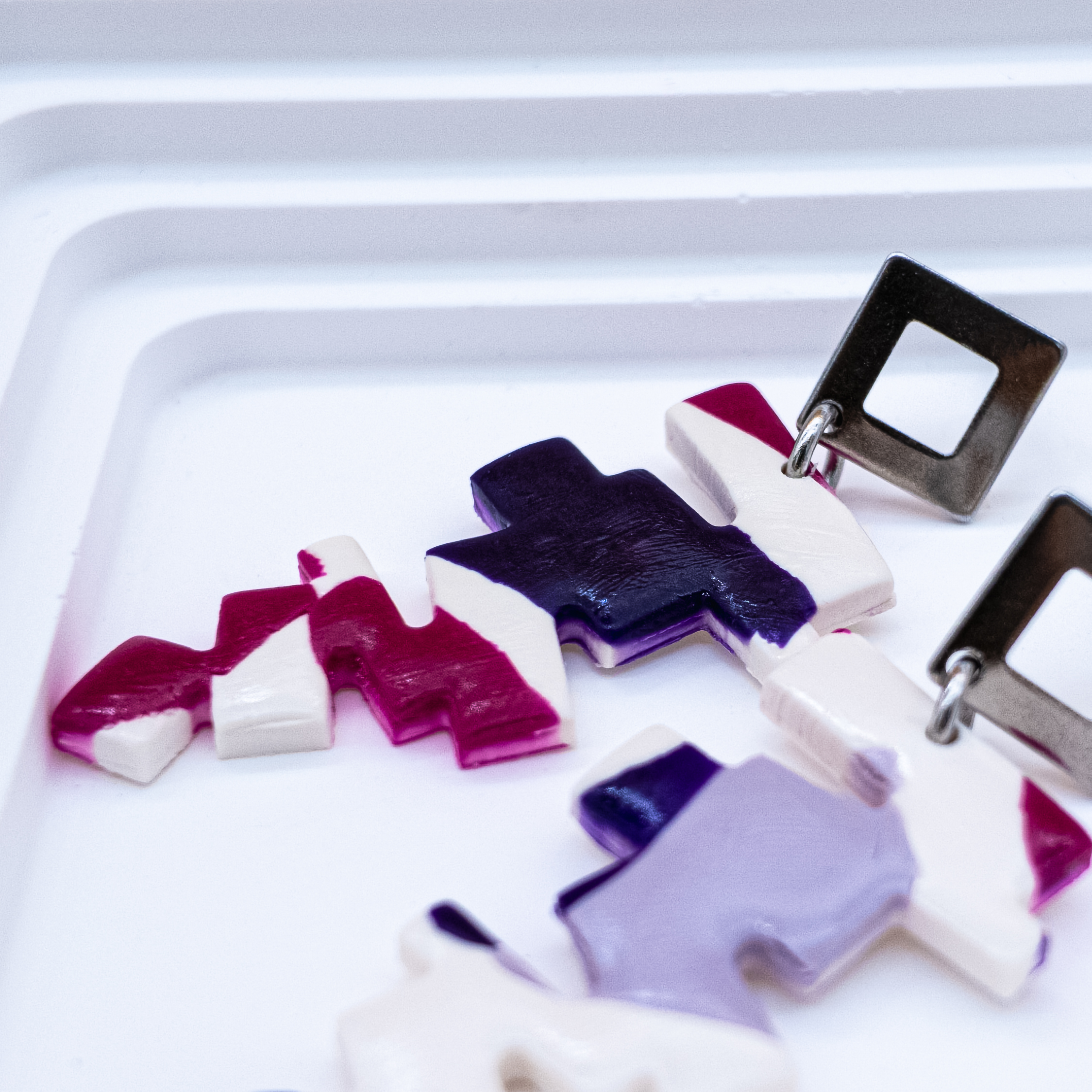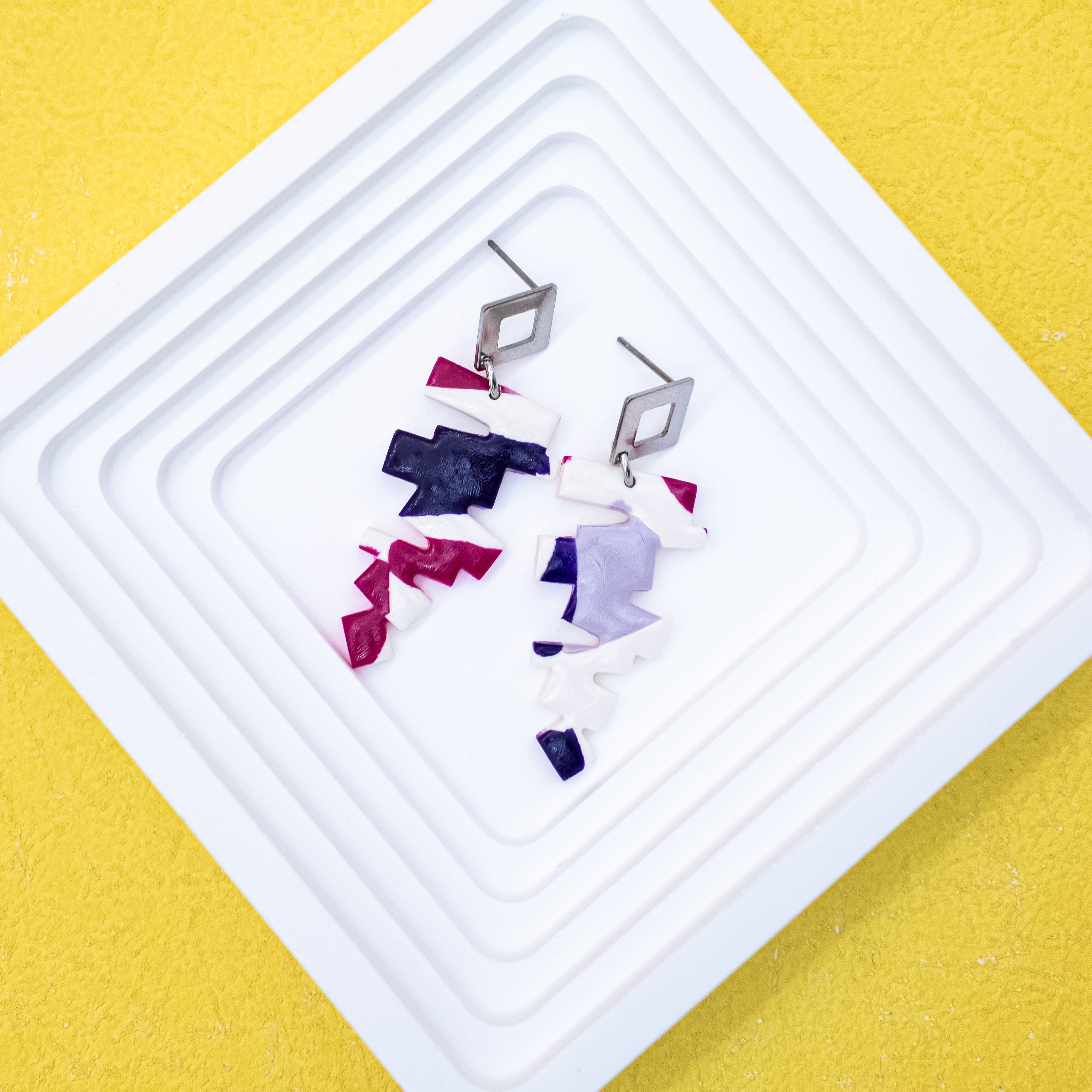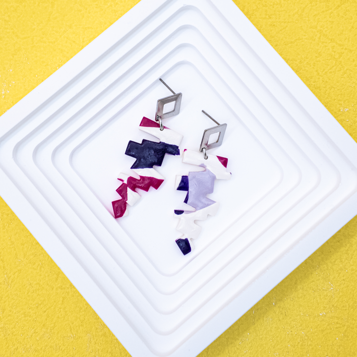 "Electric Pause" is bold geometry sculpted into wearable art — inspired by those unpredictable moments where everything stops… and shifts. Zigzagging with deep plum, lilac, ivory, and magenta, each jagged layer feels like a visual heartbeat — unpredictable and electric.